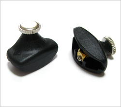 ドイツの老舗メーカー ウィットナー社製新アジャスターです!大部分が樹脂製で、微調整構造が、微調器Aタイプのような弦を押すタイプではなく、コの字型の部品に弦を通し、引っ張り上げて音程を調整する構造になっています。ネジ回し具合がやわらかくスムースに回るのも特徴で、指先の力が弱い方へオススメします。また、アジャスターを内外弦の近くに取り付けている場合、アジャスター同士のぶつかりによる雑音も防ぎます。