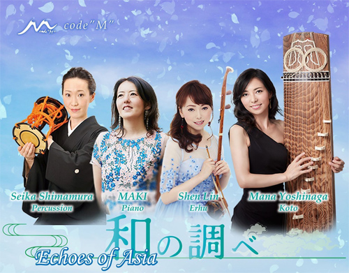 和楽器の箏と邦楽囃子、中国の楽器 二胡、西洋楽器のピアノで奏でる、女性アーティスト4人のカルテット
